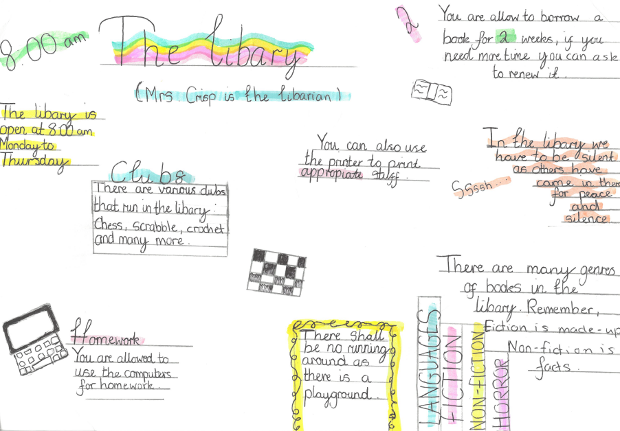 The finished posters will be proudly displayed around the library and school corridors to encourage others to visit this wonderful school facility.